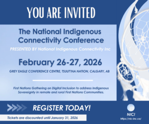 The National Indigenous Connectivity Initiative (NICI) invites you to Tsuut’ina Nation, Calgary, Alberta on February 26-27, 2026 for our National Indigenous Connectivity Conference.